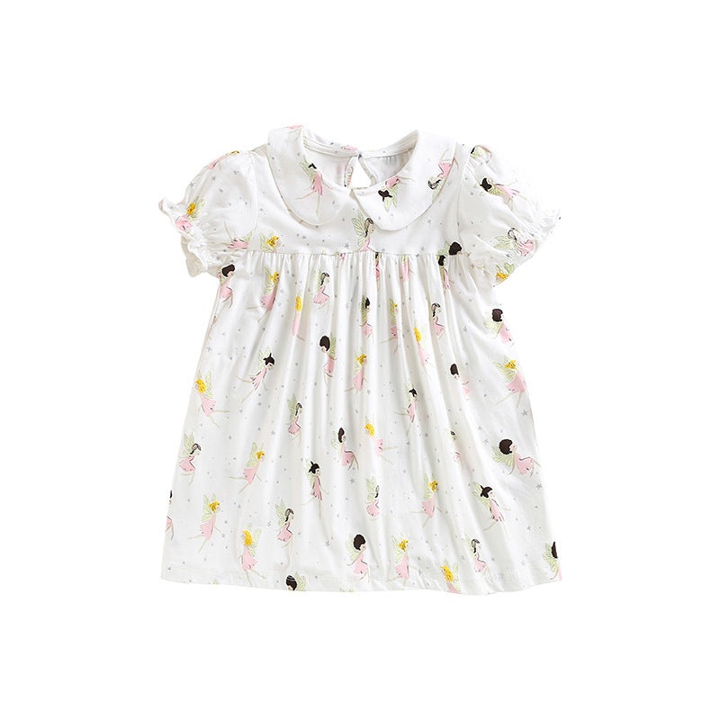 GWIL528534004Baby Girl Cartoon Print Pattern Doll Neck Princess Dress