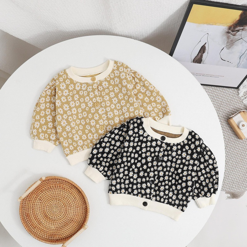 This cute and stylish Baby Girl Daisy Pattern Single Breasted Design Puff Sleeve Sweet Cardigan is the perfect way to dress up any outfit. Its sweet daisy pattern gives it a cheerful look and the puff sleeves add a touch of sweetness. Keep your baby lookin
