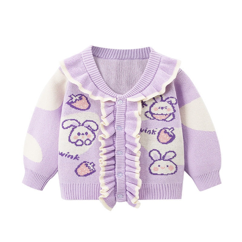 This Baby Girl Flower Graphic Mesh Design V-Neck Knit Cardigan is sure to be the cutest addition to your lil tot's wardrobe! Keep your lil one lookin' stylin' while they're lookin' cute!COLORBlue, PurpleGENDERBaby Girl, GirlMATERIALCottonPATTERNFloral (Flo