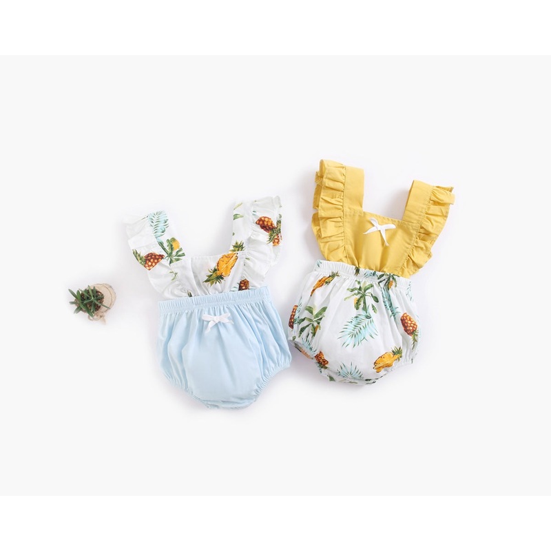 Make summer fruity and fun with this stylish Baby Girl onesie! Perfect for plays in the park, the eye-catching fruit print pattern and delicate lace design will have her feeling oh-so-sweet.COLORBlue, YellowGENDERBaby GirlMATERIALCottonPATTERNFruit (Vegeta
