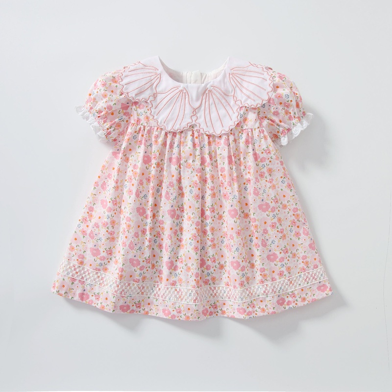 GWIL528537001Baby Girl Short-Sleeved Floral Print Shell Shape Collar Pattern A Version Dress