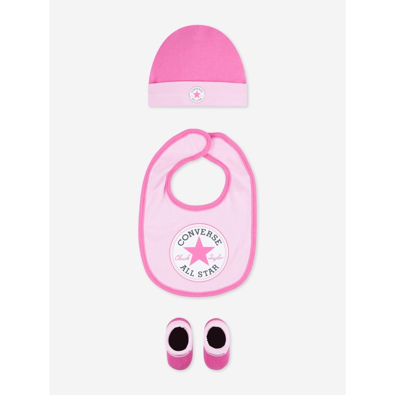 Introducing the exquisite Converse Baby Girls 3 Piece Set in Pink, an essential addition to your little darling's wardrobe. Perfect for all seasons, this set ensures your baby girl remains the epitome of style and comfort throughout the year. Heres why it