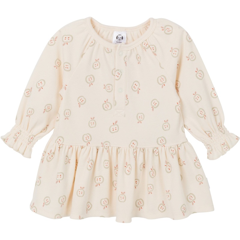 Our adorable baby girl dress, made from soft fabric, ensures your little one stays comfy all day long. The cinched, comfort-stretch waistline offers a perfect fit for your baby girl, allowing her to move freely. With its stylish ruffled skirt, this dress adds a touch of charm to any occasion, whether it’s a family gathering or a playdate. Plus, the easy pull-on style with a partial button-down front makes dressing up a breeze for busy parents. Treat her to comfort and style with our delightful baby girl dress! Our essentials have been independently certified with STANDARD 100 by OEKO-TEX so that you dont have to worry about harmful substances in your babys wardrobe. This pack includes one dress.