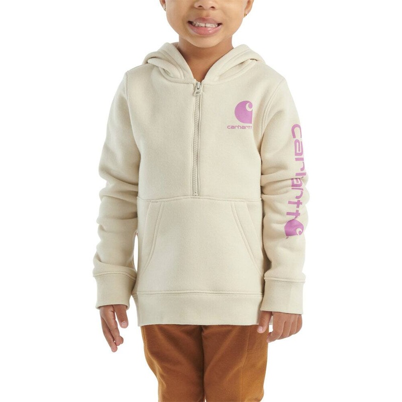 Keep her cozy and ready for anything with the Baby Girls' Long-Sleeve Half-Zip Sweatshirt CA7076. Made from soft fleece yet built with Carhartt toughness, this half-zip sweatshirt is easy to put on and take off, making it the perfect go-to layer for unpred