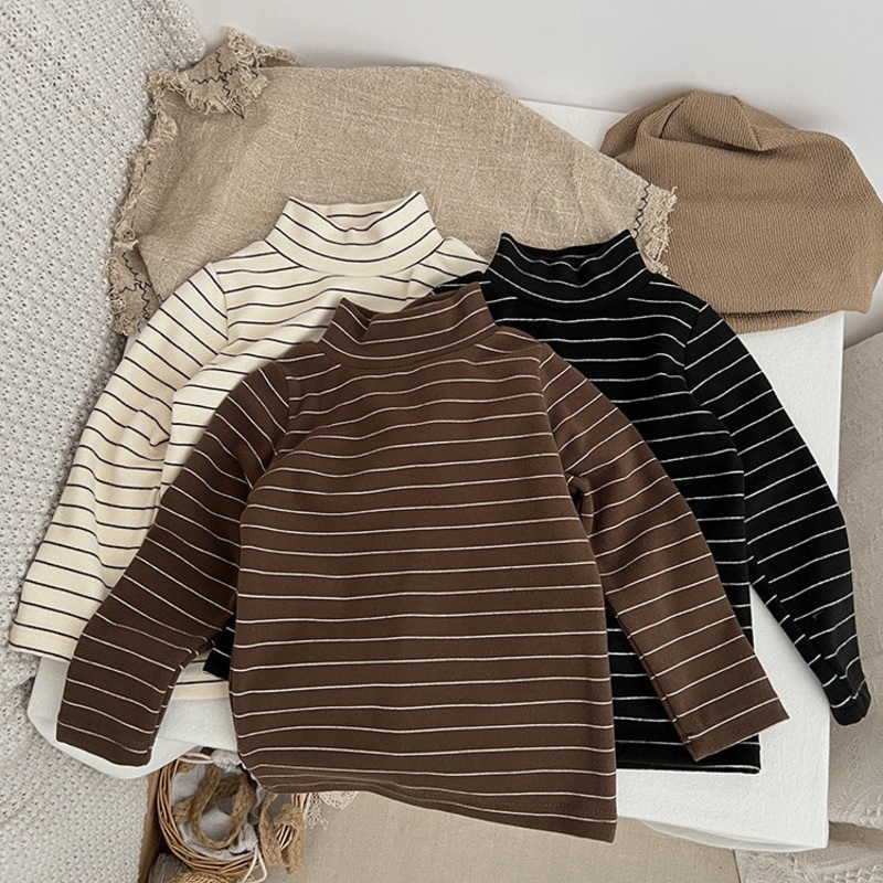 This Striped Pattern High Turtle Neck Soft Cotton Comfy Shirt is designed for maximum comfort for your baby. It is crafted with ultra-soft cotton for a gentle and breathable fit, as well as a high turtle neck for a cozy feel. The stylish, striped pattern a