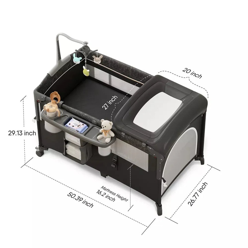 5-in-1 Portable Nursery Center: Accommodates newborns to toddlers (0-36 months) and functions as a bedside sleeper, travel crib, bassinet, playard, and diaper changer.