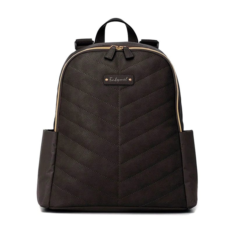 Parent in style with your new Gabby backpack. Spacious, durable, and most of all - stylish. The vegan leather front panel features a chevron quilt stitch detail to give this changing bag a contemporary look. With a wide and secure double zipped closure for