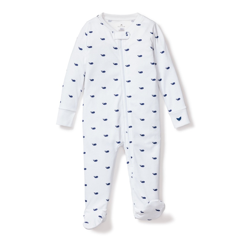 Petite Plume wishes you a bonne nuit, and in their luxury sleepwear, its hard not to oblige. Crafted in exquisite cotton, with the finest attention to detail, Petite Plume delivers the utmost comfort and sophistication. This romper combines cuteness, functionality, and softness, ensuring your baby looks and feels their best throughout their day. This hand-drawn print features playful whales swimming across a crisp white background, a nod to the majestic creatures of the ocean depths. The deep navy silhouettes offer a chic contrast that is as stylish as it is soothing.
