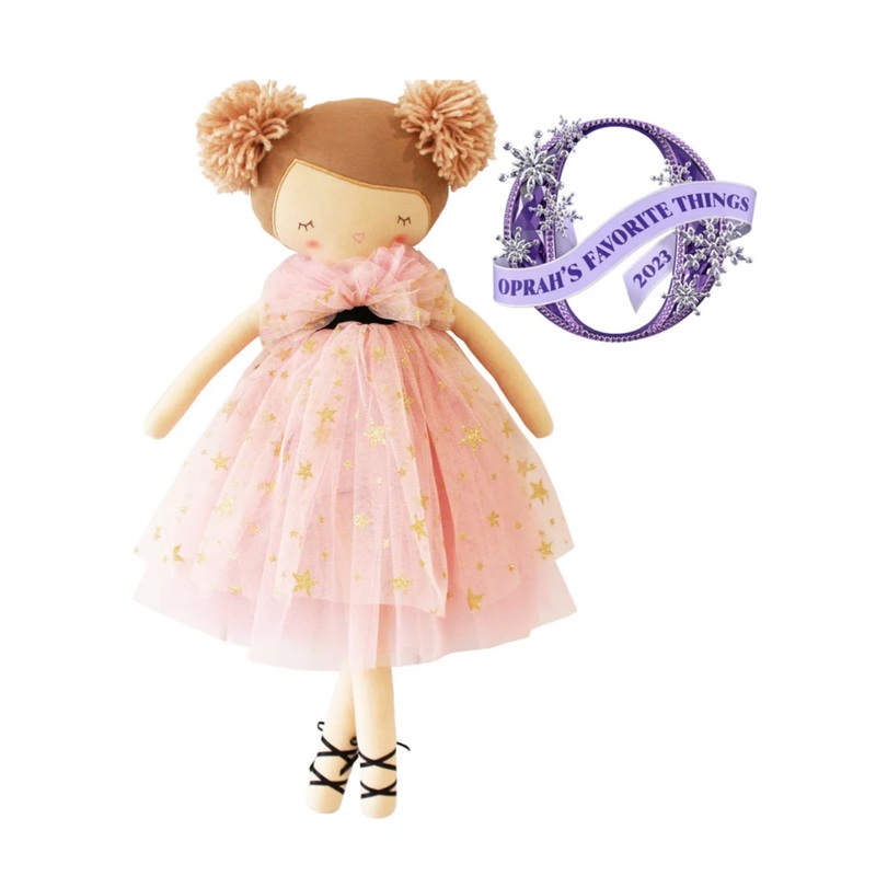 Featuring a soft tulle layered ballet-style dress adorned with sparkly gold stars, delicate embroidered face details, and whimsical pom-pom yarn hair.With a diverse range of five combinations to choose from, there's a Halle Ballerina Doll for every child.