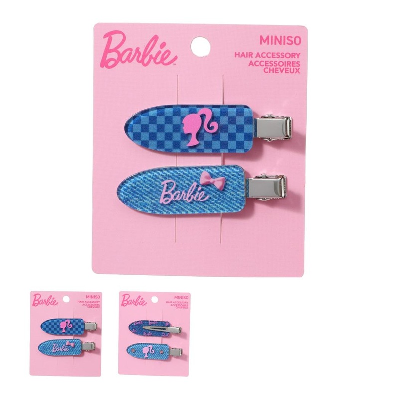 Barbie Pink Collection Hair Clips (2 pcs)Material: Sturdy metal with a Barbie pink enamel finish.Color: Barbie blue with a glossy and stylish design.Design: Set of two matching clips with a snap closure for easy use.Features: Lightweight, durable, and perf