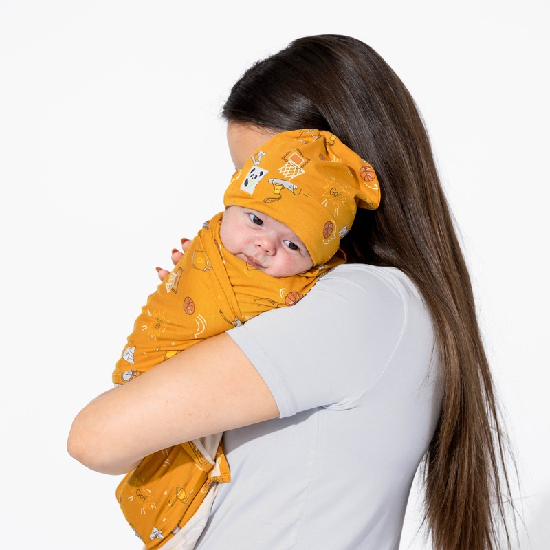 Score a three-pointer in style with our Basketball Bamboo Swaddle & Beanie Set! Crafted from ultra-soft bamboo fabric, this set offers unbeatable comfort for your little MVP. The swaddle blanket is perfect for wrapping your baby up snugly, while the coordi