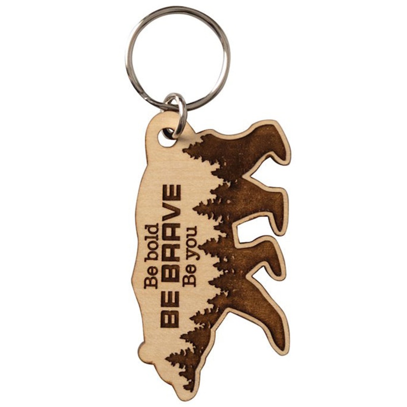 This Be Brave Laser-Engraved Maple Wood Keychain makes an inspiring gift for family or friends. It is crafted in genuine maple wood with a laser etched design for long-lasting quality. This keychain comes in the shape of a bear with the sentiment “be bold, be brave, be you” with a forest design.