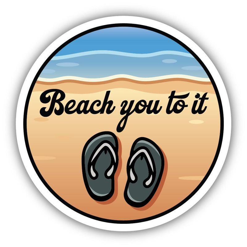 Customize your laptop, notebooks, water bottles, and more with this Beach You To It Sticker 3070-LSTK. Features a pair flip-flops by the ocean.Matte finish laminated vinylWaterproofFadeproof (all weather)Removable without residueApproximate Size: 3 inchesD