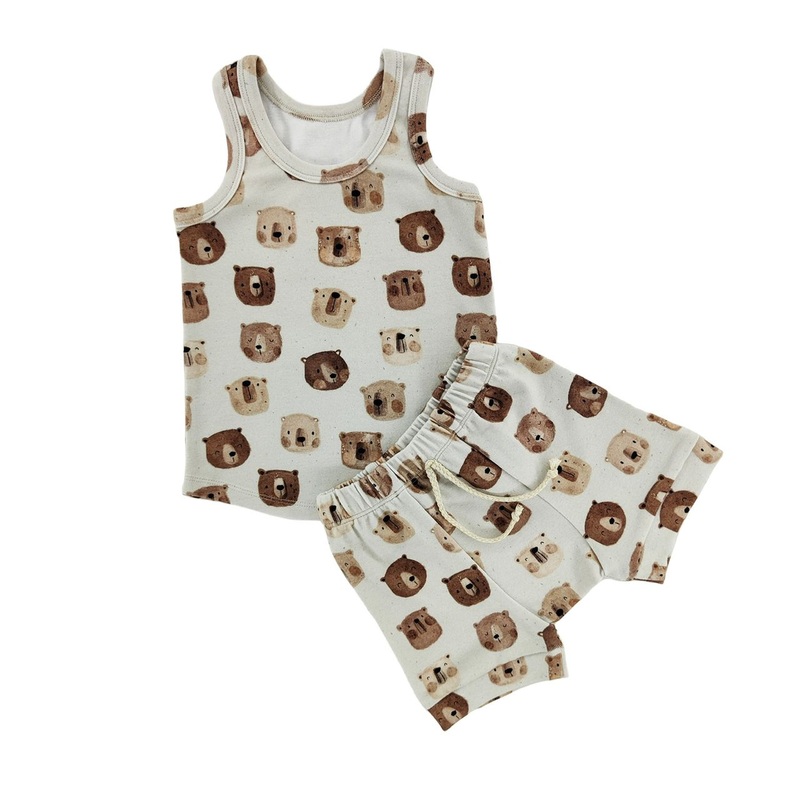 True to size2 piece tankand shorts setSoft, stretchy fabricFull elastic waistband shorts95% Cotton 5% Spandex