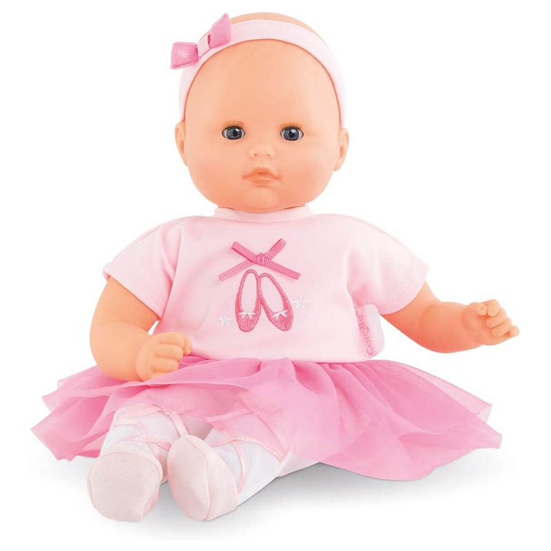 Bebe Calin Ballerina is a 12- inch baby doll - the perfect size for little mommies and daddies to rock and cradle in their arms. Its soft body is posable like a real baby, and its blue sleepy eyes close when it's put down for a nap or at bedtime, also like