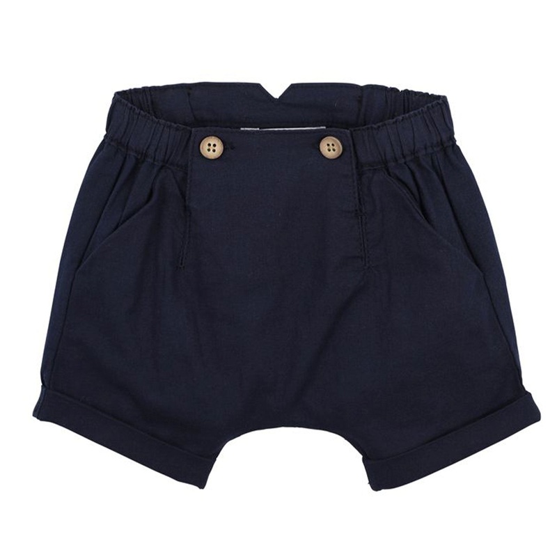 These handy linen blend shorts feature an elasticised waist with two front buttons, side front pockets and rolled cuffs. Super cute dressed up for a special occasion with a collared shirt or tee for everyday wear.Features:Elastic waistFront side pocketsRol