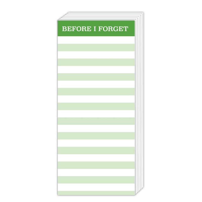 With a colorful pattern, a fun saying and coordinating ribbon, this notepad, printed on heavy cardstock, is one of our most popular items!Convenient skinny size65 sheets100# card stockSize 3.85 x 8.75"Made in USA
