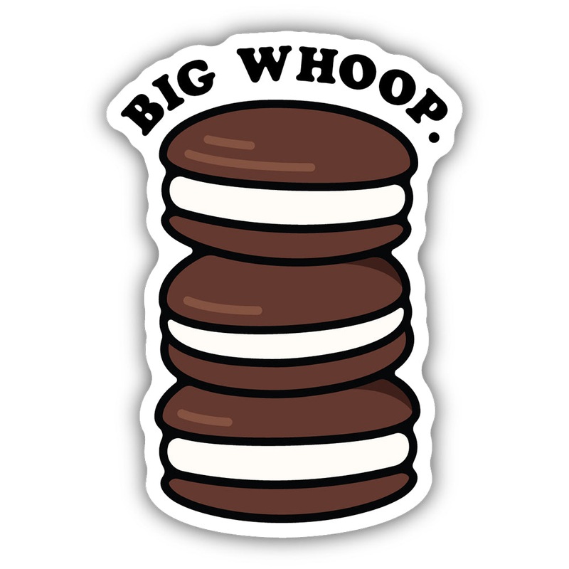 Decorate your water bottle, notebook, laptop, and more with this sweet Big Whoop Whoopie Pie Sticker. It features a stack of delicious-looking whoopie pies with the words "big whoop."Matte finish laminated vinylWaterproofFadeproof (all weather)Removable wi