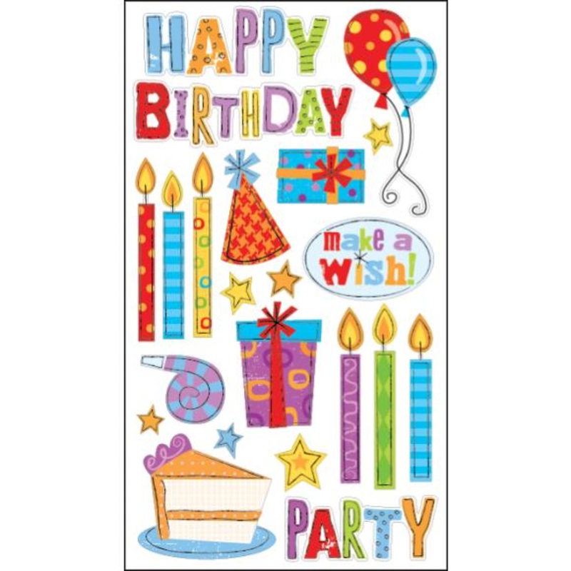 Embellish birthday cards or scrapbook pages with these fun and colorful Birthday Party Stickers. They will add a pop of color to your projects.Contains 22 stickersFlat stickers