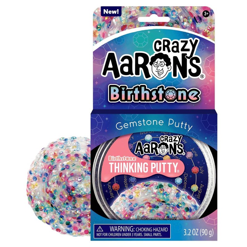 Ancient astrologers attributed gems to bring wellness and good fortune each month of the year. We celebrate today with jewelry, crystals, and even Thinking Putty. The stunning array of hues from the magical jewels in Birthstone Thinking Putty can bring focus and peace. hinking Putty helps build hand and finger strength through a fabulous tactile play experience with unique, unexpected properties and provides relaxing, yet stimulating interaction for anyone with sensory integration issues.Crazy Aaron’s putty is non-toxic, won’t dry out, and won’t leave a sticky or slippery residue on your fingers, so it’s great for stretching, molding, bouncing, tearing, popping and playing by kids and adults alike. For Ages 3 and up. WARNING: CHOKING HAZARD – Small Parts. Not for children under 3yrs.