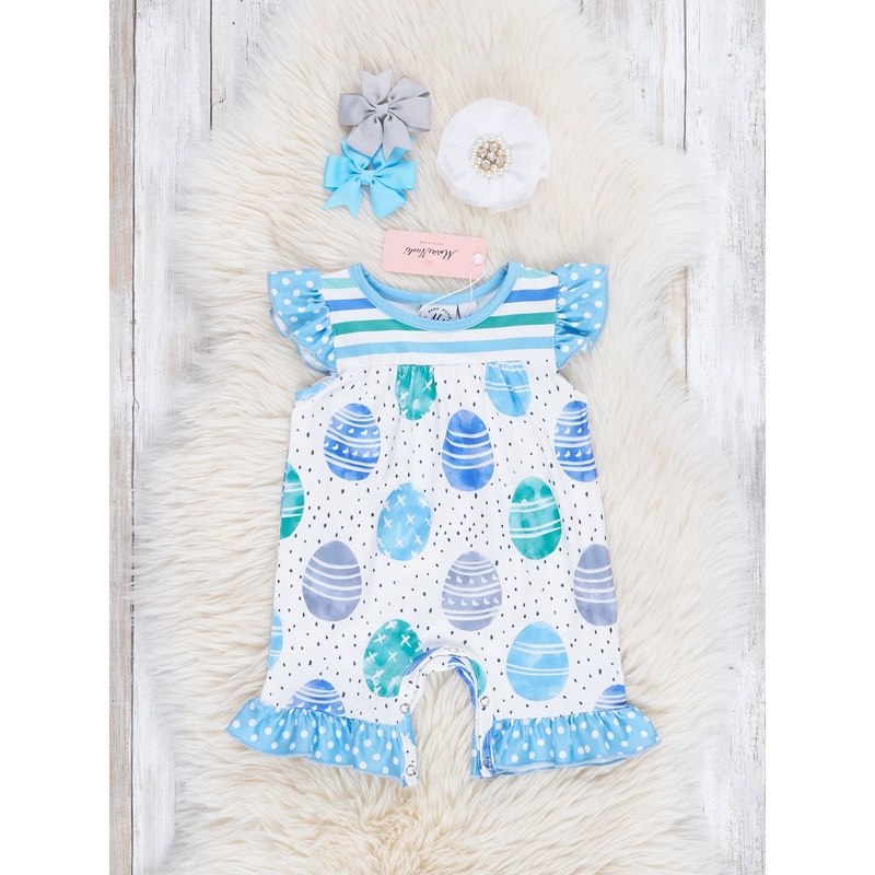 You’ve found thebest sibling setfor this Easter! This dress featureselegantEaster eggs, polka dots, ruffle details, & stripes.