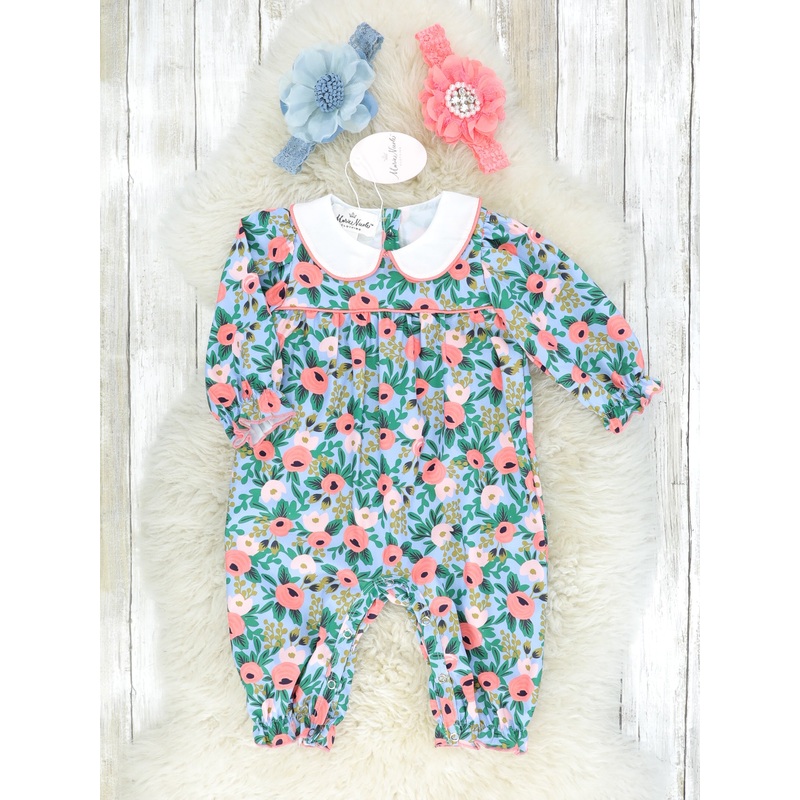 Blue & Pink Vintage Floral Romper