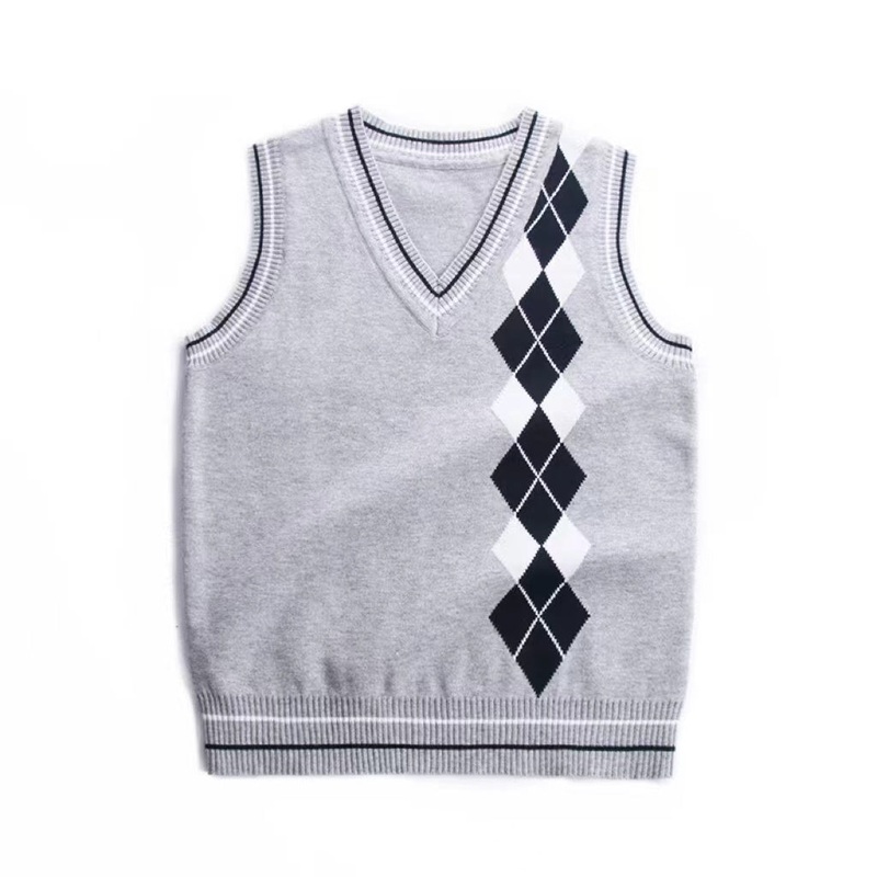GWIL528533656Boy And Girl Rhombus Pattern V-Neck College Style Sleeveless Vest Sweater