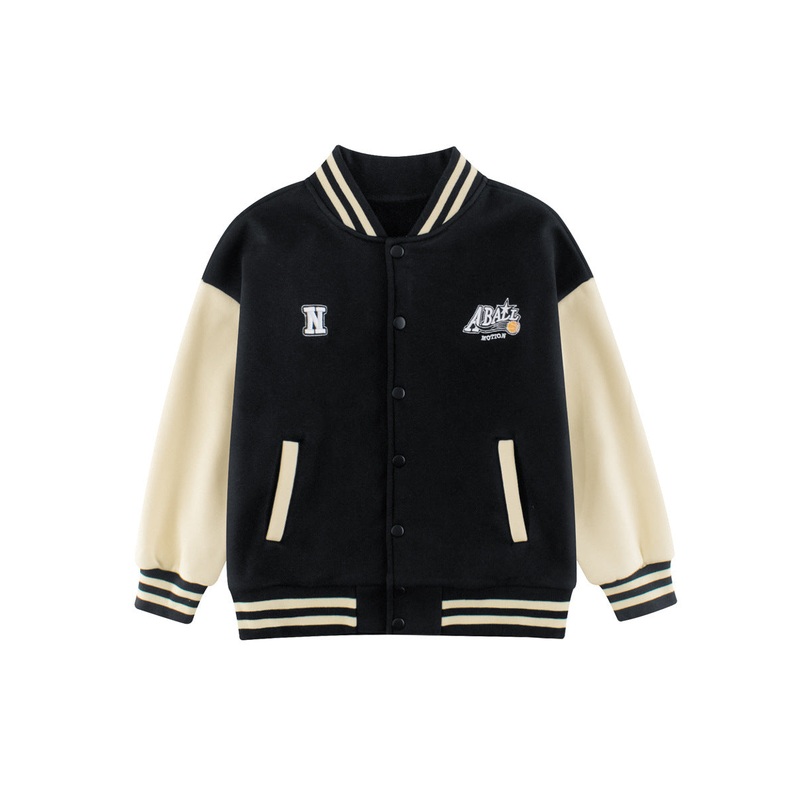 This lively baseball coat features a fun letters pattern with contrasting colors, perfect for boys and girls who love to stand out. Its single-breasted design offers easy wear and a cool, sporty look thats great for playdates or casual outings. Comfortable