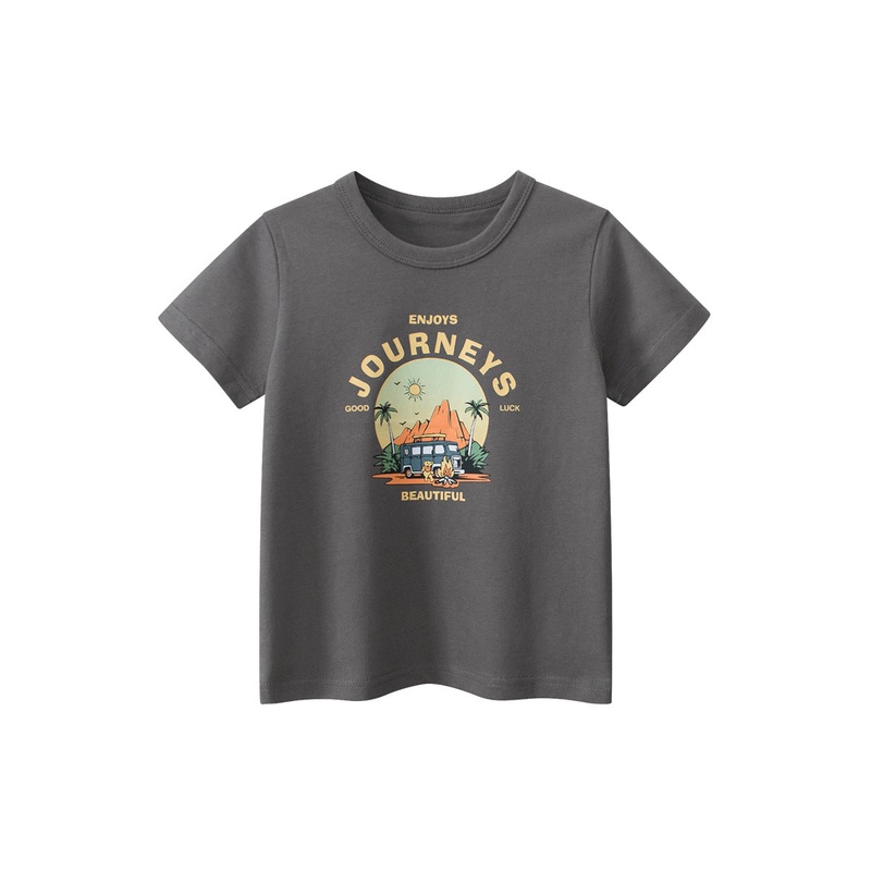 This playful boys T-shirt features vibrant cartoon scenery and bold letter prints inspired by European and American styles. Made for comfort and fun, its perfect for everyday adventures and adds a splash of color to any outfit. Easy to pair and sure to spa