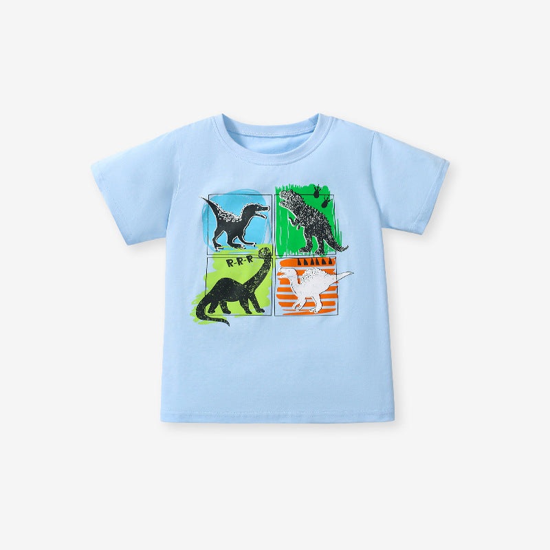 Get ready for some dino-mite summer fun with our Boys Dinosaur Cartoon Print T-Shirt! This stylish tee features a fun and playful dinosaur design in a trendy European and American style. Perfect for warm weather, your little one will love the comfortable fit and you’ll love the unique and eye-catching look. Don’t miss out, grab one now!