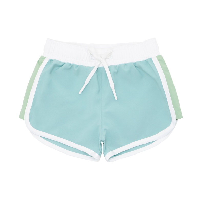 Splish splash! Your little ones can play all day, in and out of the water, in the clean lines, simple details, and fun silhouettes of Minnow Swims resortwear for girls and boys.Equipped with an elastic waistband and an inside stretch liner, the Boys Sea Boardie hits at the perfect length for style and functionality. We love the dual, solid, sea green color, and so will your little one.