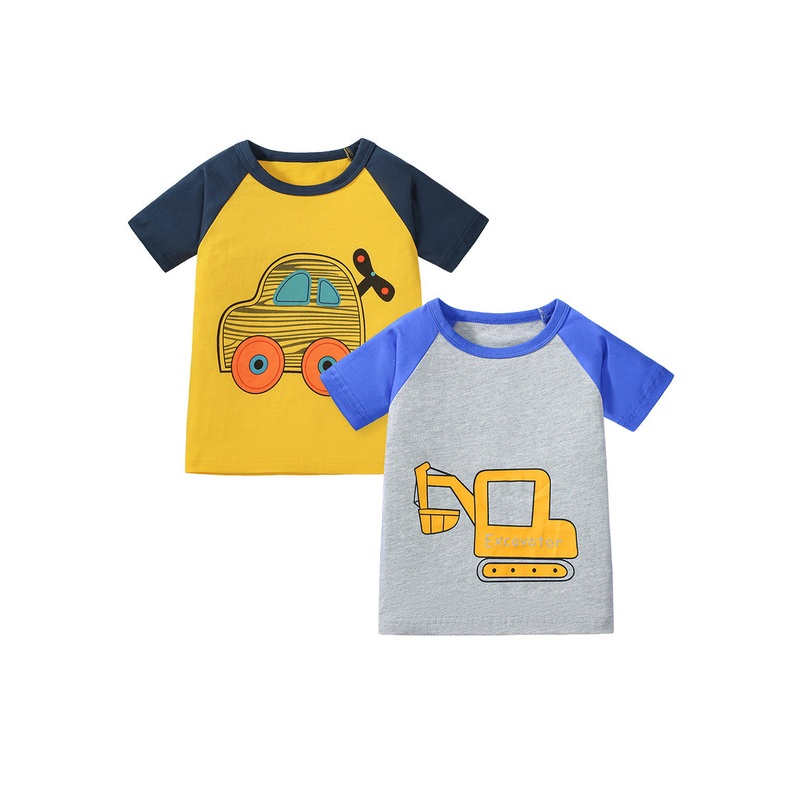 Introducing our luxurious Boys Vehicles Cartoon Pattern Short Sleeves T-shirt, designed with European and American style for a sophisticated look this summer. Made with breathable fabric and a vibrant cartoon pattern, this shirt will keep your little one c