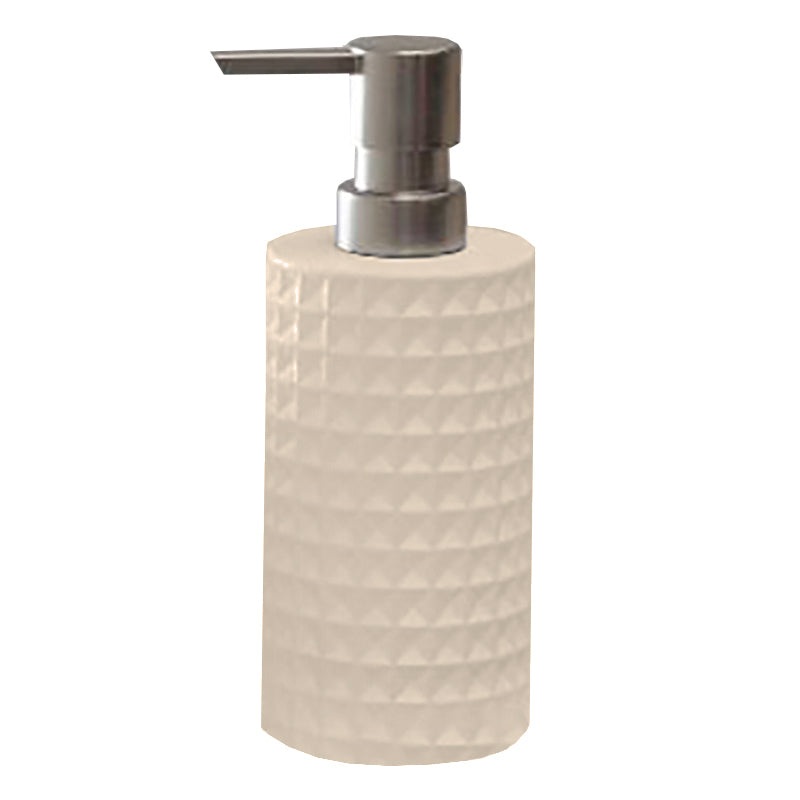 The Braemar collection has a timeless, contemporary look that blends well with most decor. This resin soap dispenser features a glossy, all-over beveled design. It is ideal for liquid hand soap or lotion.Material: resinCapacity: 12 oz