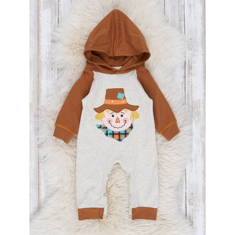 Brown Sweet Scarecrow Raglan Hoodie Romper