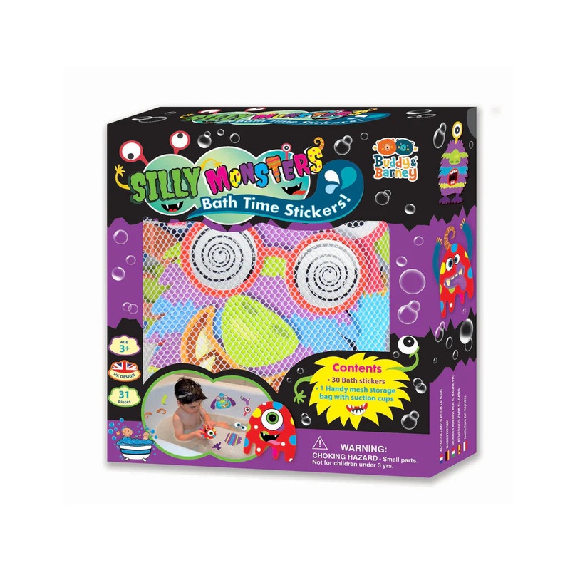 Product: Buddy & Barney Bath Time Stickers - Silly MonstersCode: BB167Hours of bath time fun to be had creating lots of different weird and wonderful silly monsters.The chunky foam pieces can be stuck to the bath tub when they're wet, or float on the surfa