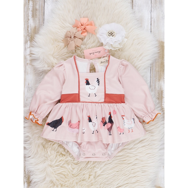 Time to strut your stuff in this chic Burnt Orange & Blush Chicken sister set! Show off your fashion feathers with the unique embroidered chicken design and a tie-back for an adjustable fit. Feeling extra feisty? Go forthislook that'll truly make you stand