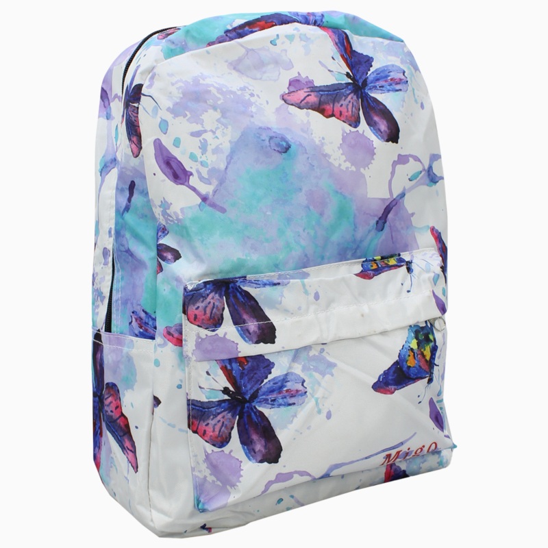 Bring elegance and charm to school with this butterfly-themed backpack.Beautiful print on a bright white baseSoft, padded support for backsMultiple pockets for neat organizationBuilt to last through the school year