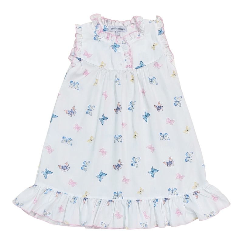 Get your little one ready for bedtime with our lovely Butterfly Print Nightgown! This charming nightgown features a sweet butterfly print, sweet ruffle details, and front buttons. Add a monogram for a personalized touch!