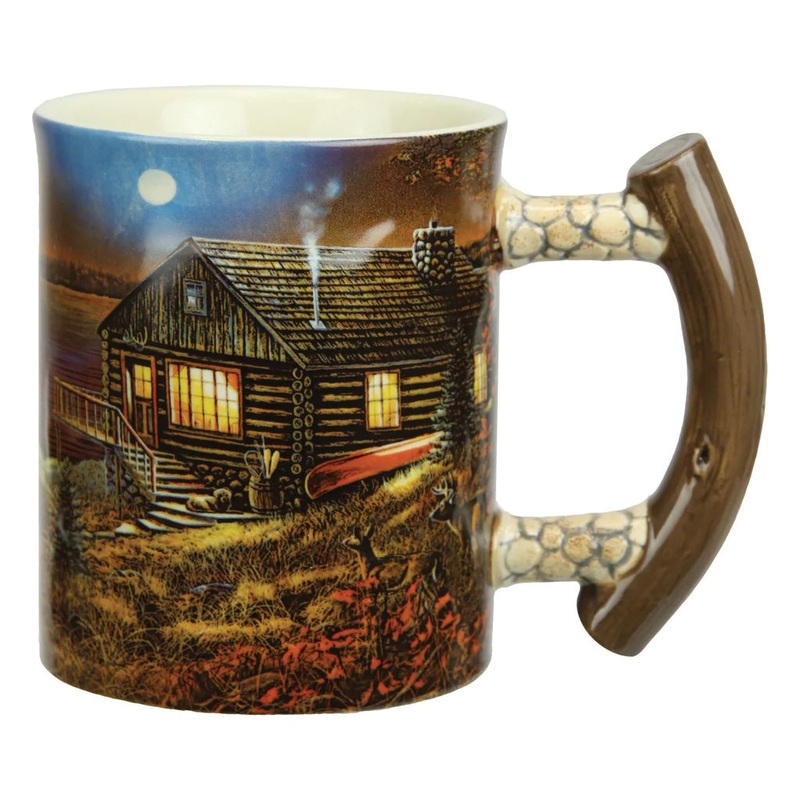 Get an outdoor man the perfect gift with this Cabin 3D Deluxe Ceramic Mug! It features impressive three-dimensional artwork of a cabin by the lake underneath the moonlight. The design wraps around the mug completely, and the handle is even designed to look