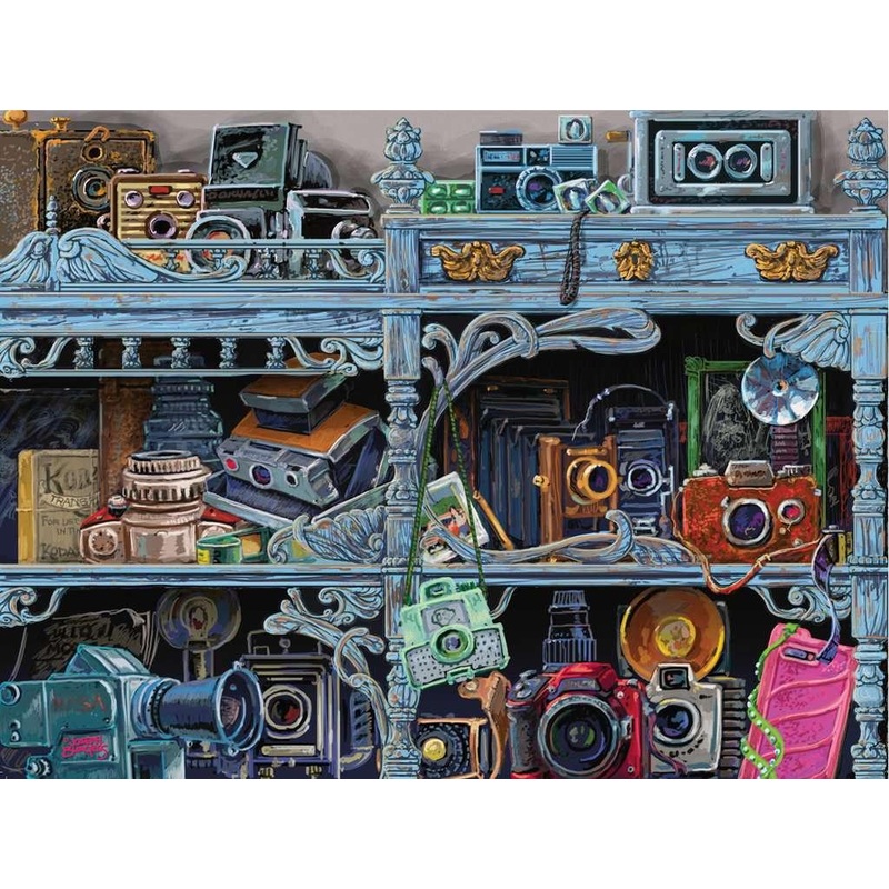 Assemble the easy to see and grip pieces to complete this storage shelf jam packed with new and antique cameras. 300-piece Large Format Puzzles from Ravensburger feature larger pieces with solutions for puzzlers both young and old in mind. Whether you are new to puzzling, an avid puzzler with limited time, or a puzzler who needs pieces that are easier to hold or see, Ravensburgers 300-piece Large Format Puzzles are the perfect fit for you! For ages 7 and up. WARNING: CHOKING HAZARD – Small Parts. Not for children under 3yrs.