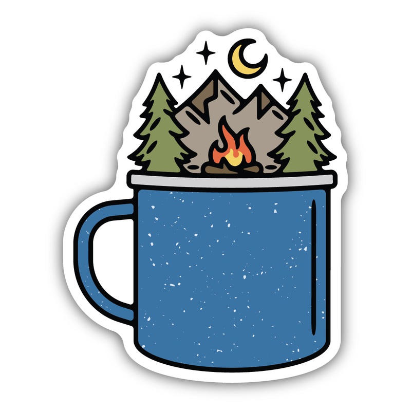 Personalize your mugs, water bottle, laptops, and more with this Camping Mug Sticker 2558-LSTK. Matte finish laminated vinylWaterproofFadeproof (all weather)Removable without residueApproximate Size: 3 inchesDishwasher safe; handwash encouragedMade in the