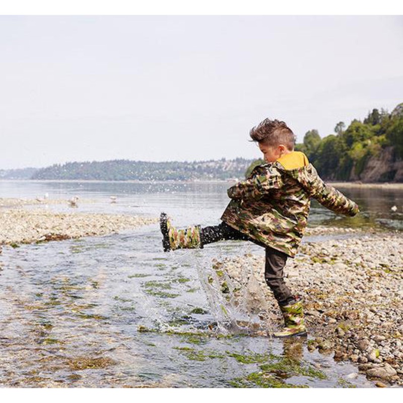 Be prepared for any water puddle with the Children’s Camo Rain Boots 585 from Western Chief! 100% waterproof and designed with 2 rubber pull on/off loops. Treaded soles to give little feet a good grip on wet ground!
