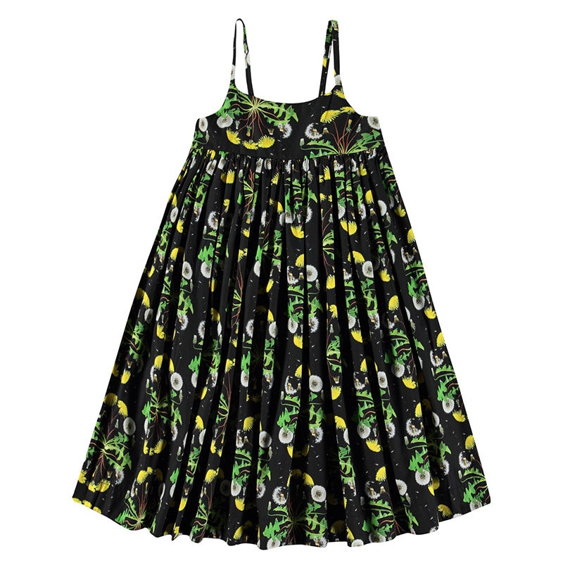 Knee-length dress in organic cotton with thin straps. The dress has a fitted bodice across the chest, smock effect in the back, and invisible zip on the side for easy on and off. Loose fit with an all-over print of dandelion plants.Composition100% Organic