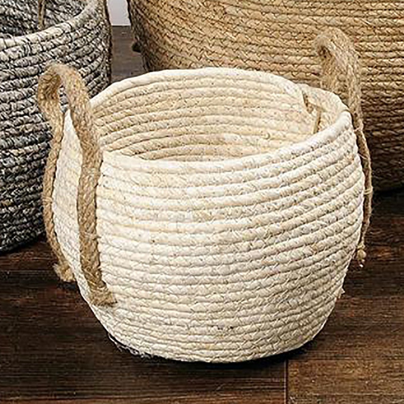 These Corn Husk Rope Rounded Baskets make an excellent addition to your home decor. They are simple, neutral colored, and they can be used for a variety of purposes.Small: 8.5-inch diameter at the top, 6 inches in heightMedium: 9.5-inch diameter at the top