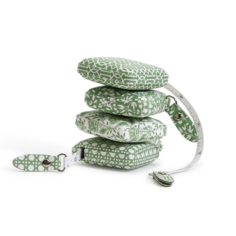 Whether you are sewing, redecorating, building or crafting you can take this measuring tape with you anywhere! Made of vegan leather and beautifully green patterns. Compactable size to fit into your pocket or purse.Measures up to 60 inches / 150 cmAvailabl