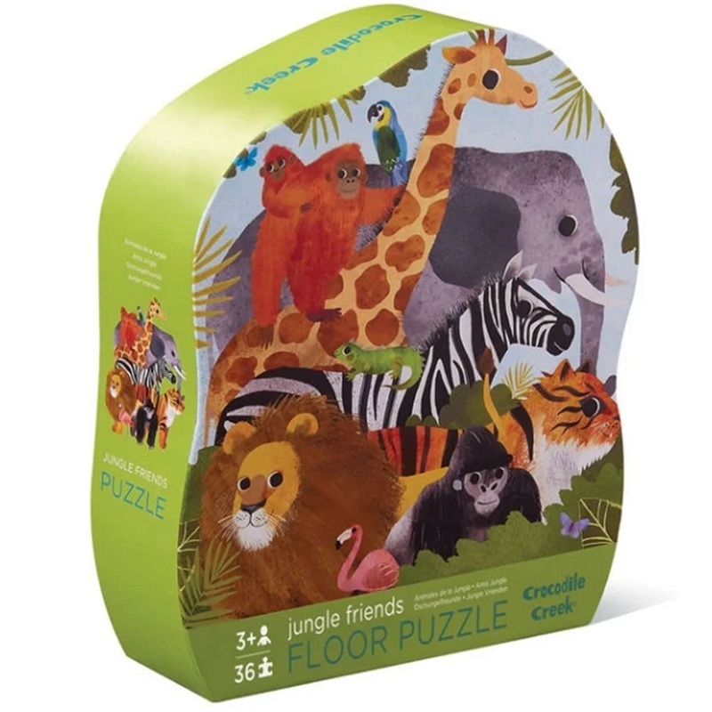 Let's go on a jungle safari! A beautifully illustrated floor puzzle presented in a unique contour shaped gift box.Features:36 jumbo puzzle piecesEncourages hand-eye coordination, fine motor skills and problem solvingCompleted puzzle is approximately 68cm W