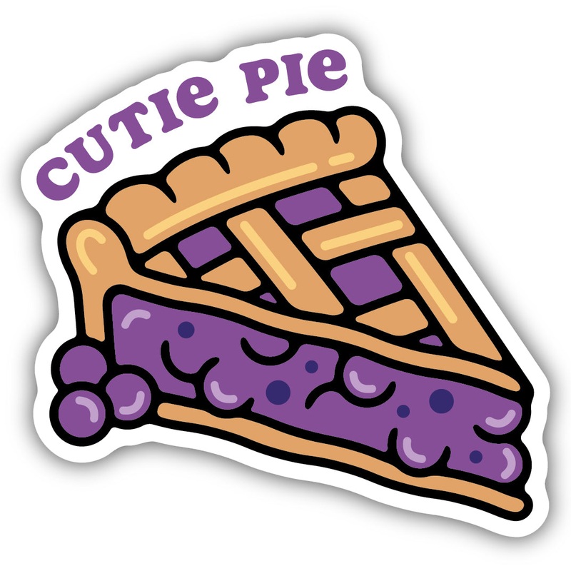 This Cutie Pie Sticker 2377-LSTK will add a fun touch to any laptop, water bottle, or notebook. Matte finish laminated vinylWaterproofFadeproof (all weather)Removable without residueApproximate Size: 3 inchesDishwasher safe; handwash encouragedMade in the