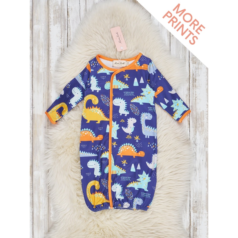 The Dinsoaur Friends Sleep Gowns are super comfy and cozy, featuring playful dino patterns for the sweetest dreams. An elastic band at the bottom makes dressing and diaper changes simple. Shop the set here!Fits true to size.95% Polyester / 5% Spandex.Impor