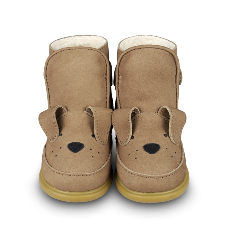 Our Dubu shoes will take kids anywhere! They are instanly recognizable thanks to the exclusive design. The leather boots are lined with shearling, have a sturdy outsole and are a real eye-catcher. Children can easily slip their feet in and they stay in place nicely during walking, running and playing. The boots fit true to size, but in case of doubt we recommend to choose one size larger.