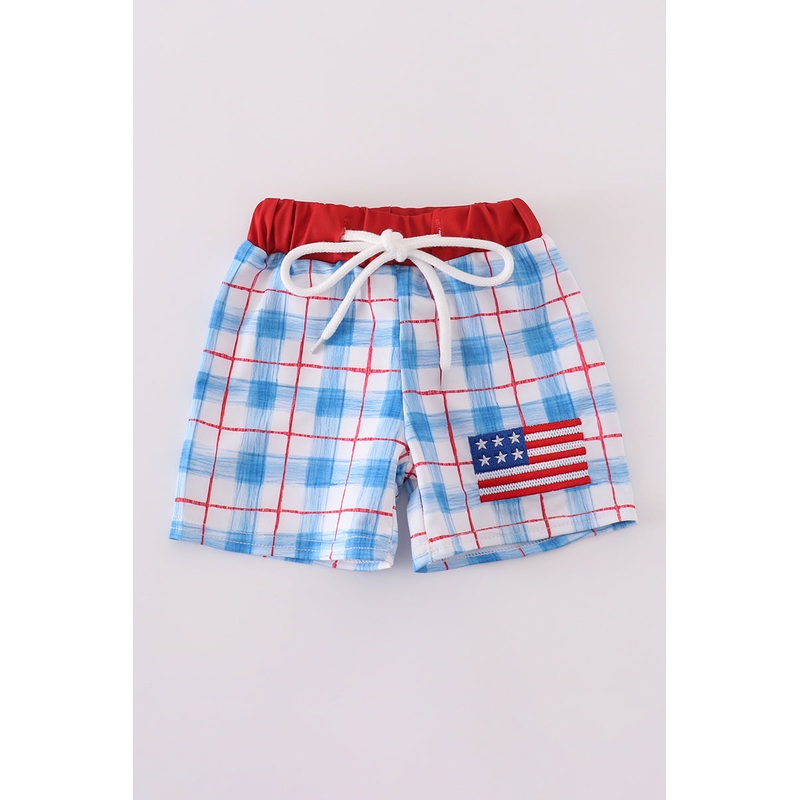Be the first to review “Flag embroidery smocked plaid swim trunkis UPF50+” Cancel reply